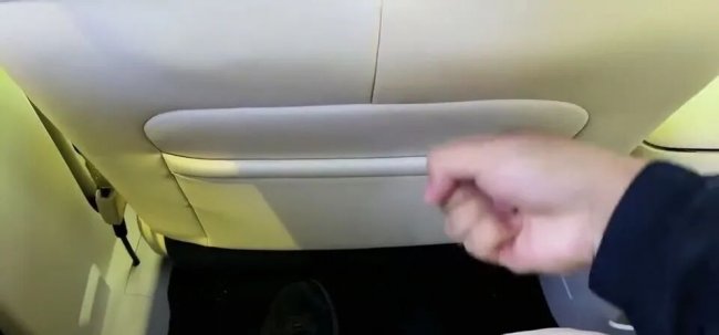 前排调到合适位置之后,坐到后排,腿部剩余空间还有将近两拳。